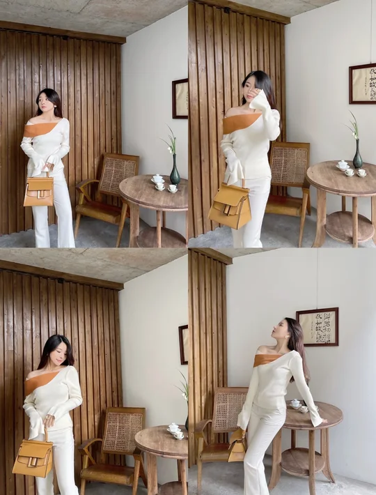 指尖握杯,抬臂饮茶时流露的是脱俗的气质